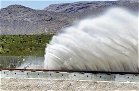 新華社美國拉斯韋加斯5月11日電 11日,美國內(nèi)華達州荒漠中心。伴隨倒計時結(jié)束的聲音,一個藍色的推進測試裝置沿鐵軌加速疾馳,約5秒后借助沙堆減速停止,揚起陣陣沙塵。