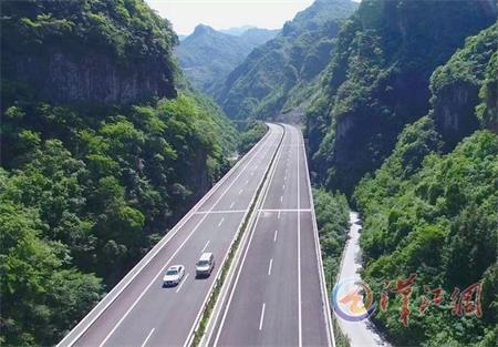 汽車在“最美峽谷高速公路”——保宜高速公路保康縣后坪鎮(zhèn)車峰坪段行駛。保宜高速公路保康縣城關(guān)鎮(zhèn)孫家灣至后坪鎮(zhèn)五道峽段,全長12公里,全部建在峽谷溪流中,是湖北首條峽谷生態(tài)環(huán)保公路,也被人們稱為“最美峽谷高速公路”。