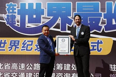 近日,在延(慶)崇(禮)高速公路金家莊特長螺旋隧道施工現(xiàn)場,經(jīng)過世界紀(jì)錄認(rèn)證英國總部認(rèn)證官Damir First現(xiàn)場認(rèn)證、授牌,由四川路橋延崇ZT10標(biāo)承建的金家莊特長螺旋隧道成功被認(rèn)證為在建世界最長高速公路螺旋隧道。