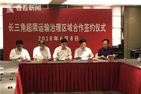 6月8日,上海、江蘇、浙江、安徽四省市交通運輸部門共同簽署《長三角地區(qū)治理貨物運輸車輛超限超載合作協(xié)議》(簡稱《協(xié)議》)。四地交通執(zhí)法部門將在公路治超區(qū)域聯(lián)合執(zhí)法、信息傳遞、協(xié)助調(diào)查、非現(xiàn)場執(zhí)法、信用采信、跨省大件運輸聯(lián)合審批等7個領域開展深入合作。